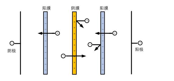 分為電滲析陰膜和電滲析陽(yáng)膜兩種,陰膜具有透過(guò)陰離子而阻擋陽(yáng)離子的特性,陽(yáng)膜具有透過(guò)陽(yáng)離子而阻擋陰離子的特性。將陰膜和陽(yáng)膜交替排布,在直流電場(chǎng)的作用下,可實(shí)現(xiàn)鹽分的遷移,從而實(shí)現(xiàn)鹽分的脫除或濃縮。